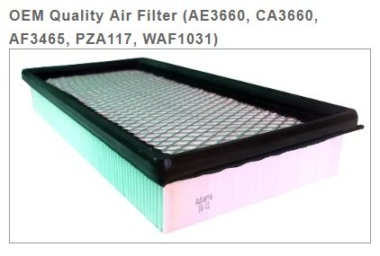 Part cross reference: AE3660, CA3660, AF3465, PZA117, WAF1031 Features: Air filter meets original equipment manufacturer(OEM) specifications Air filter changed regularly will help maintain your vehicle miles per gallon (MPG) rating Air filter changed regularly will help prolong the life of your engine Air filter should be changed at OEM specifications (usually around 12,000 miles)